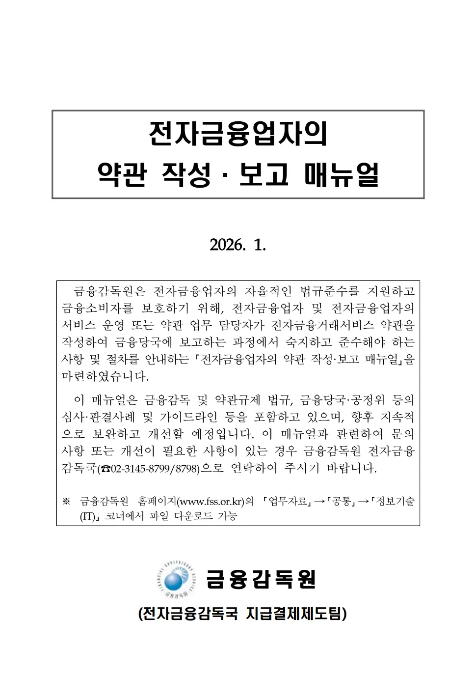 [전자금융업] 전자금융거래약관 작성, 보고 매뉴얼 다운로드 – 금융감독원(26년1월)