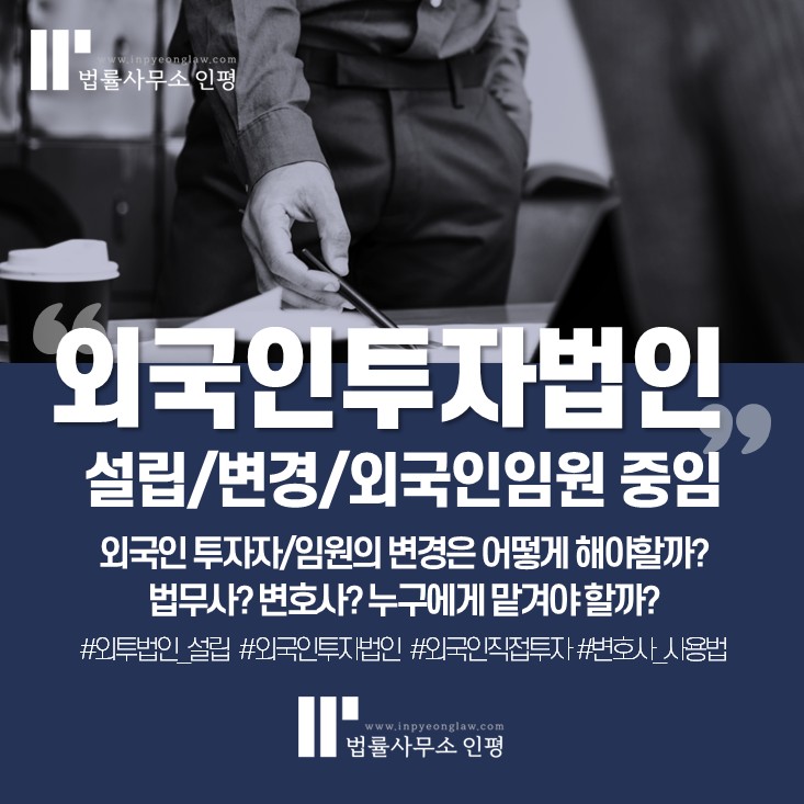 외국인투자법인 설립에 대해 법적 자문이 필요하시거나 궁금한 사항이 있으시면 언제든지 아래의 링크를 통해 법률사무소 인평에 문의주시기 바랍니다.